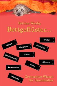 Mit Ihrem neusten Taschenbuch "Bettgeflüster …" bietet die Autorin dem Leser die Möglichkeit, sein Wissen rund um den Hund zu vervollständigen. Die Informationen gehen von „Hierarchie“, „Urlaub“, „Sexualität“, „Natur“ bis „Redensarten“ und Infos über die Gefahren für unseren Hund in den verschiedenen Jahreszeiten.